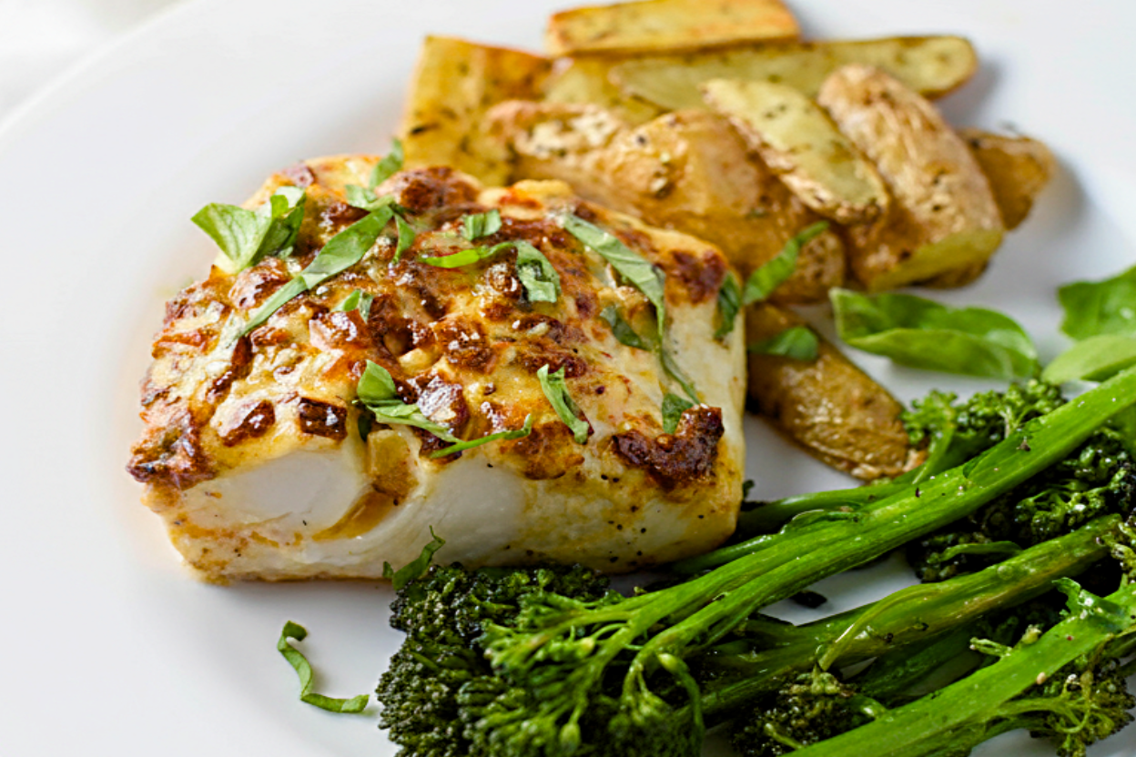 From Brest south along coastal Bordeaux all the way down to Bilbao creperiés and cafés delight diners with inventive variations on local halibut. Bold and bright flavors — sun-dried tomatoes, garlic, oregano, basil — add sparkle to the mild-flavored fish without overwhelming it. The mayonnaise, which keeps the meat moist, is a uniquely American twist and adds a tang that olive oil can’t.