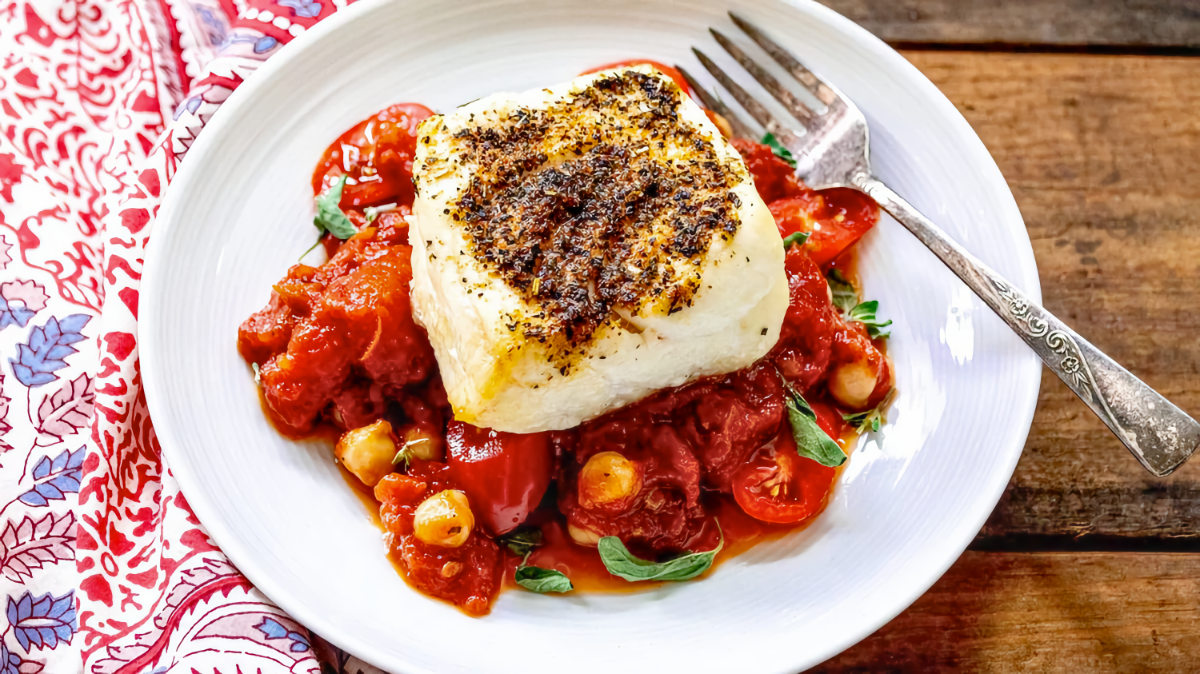 While the fillets bake, place the marinara and chickpeas in a small saucepan and heat on medium until warm.