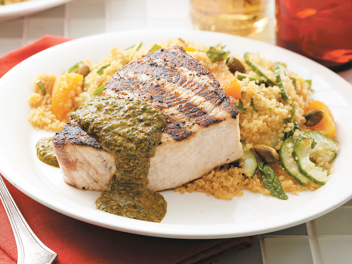 Grilled Swordfish With Lemon-Mint-Cilantro Sauce